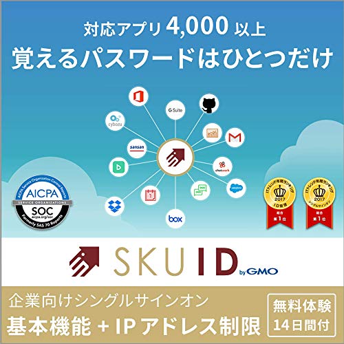 企業向けID管理・シングルサインオンSKUID | 基本機能+IPアドレス制限 | 14日無料体験版 | サブスクリプション (定期更新)