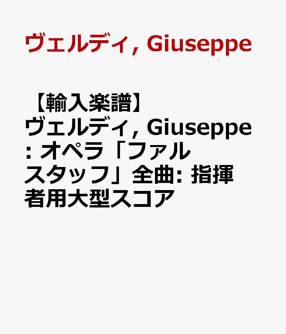 【輸入楽譜】ヴェルディ, Giuseppe: オペラ「ファルスタッフ」全曲: 指揮者用大型スコア